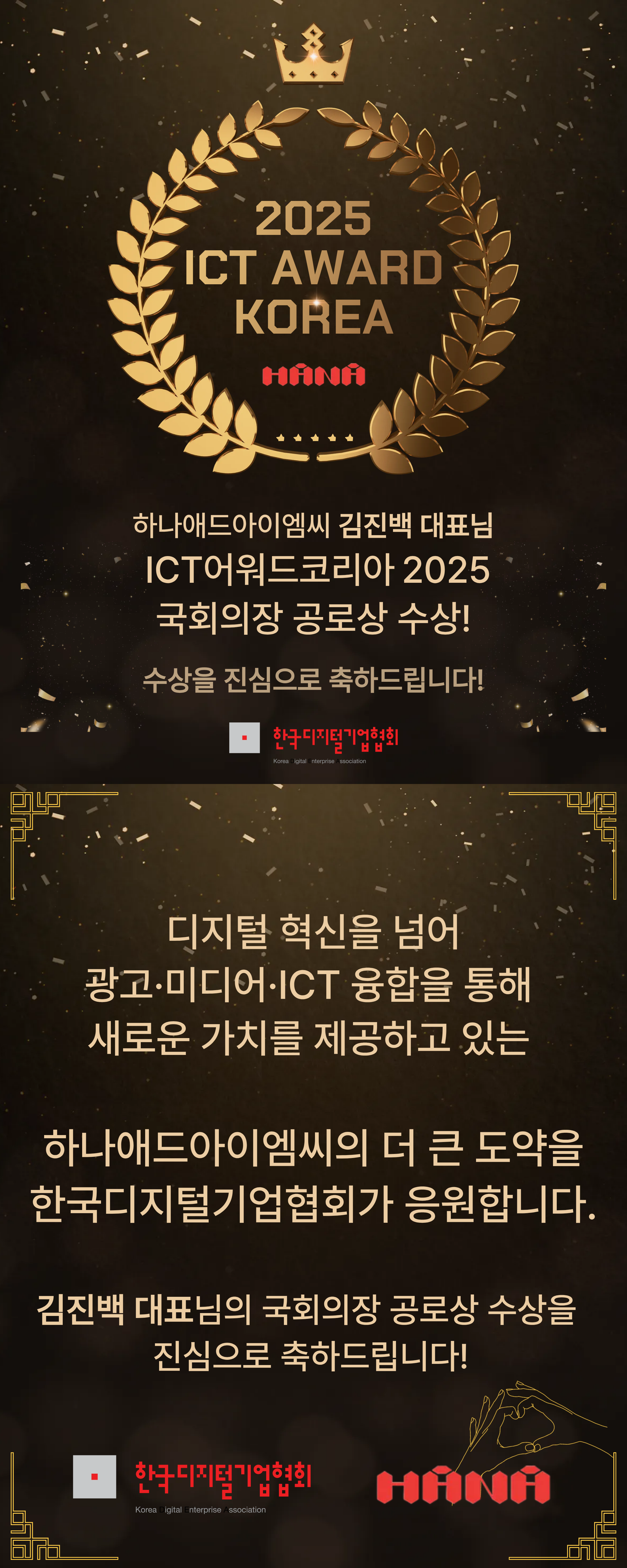 [하나애드IMC] 김진백 대표님, ICT어워드코리아 2025 ‘국회의장 공로상’ 수상 🎉 N