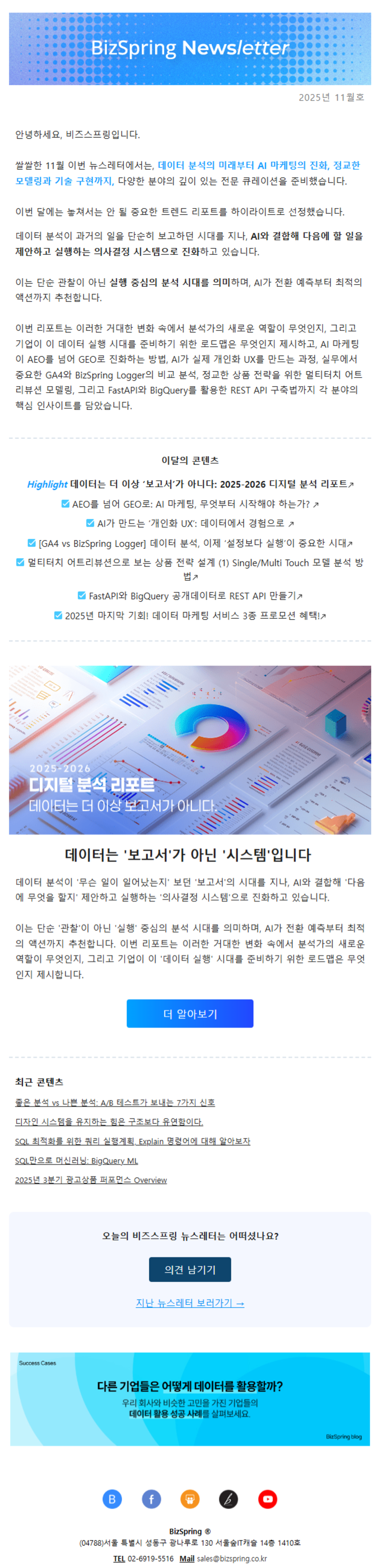 [BizSpring] 데이터는 '보고서'가 아닌 '시스템'입니다 — 11월 AI·데이터 실행 전략 6선 ( 2025년 11월호 뉴스레터) N